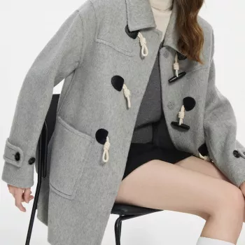 Women’s 100% Wool Reversible Cowl Button Tweed Coat - Casual Winter Jacket